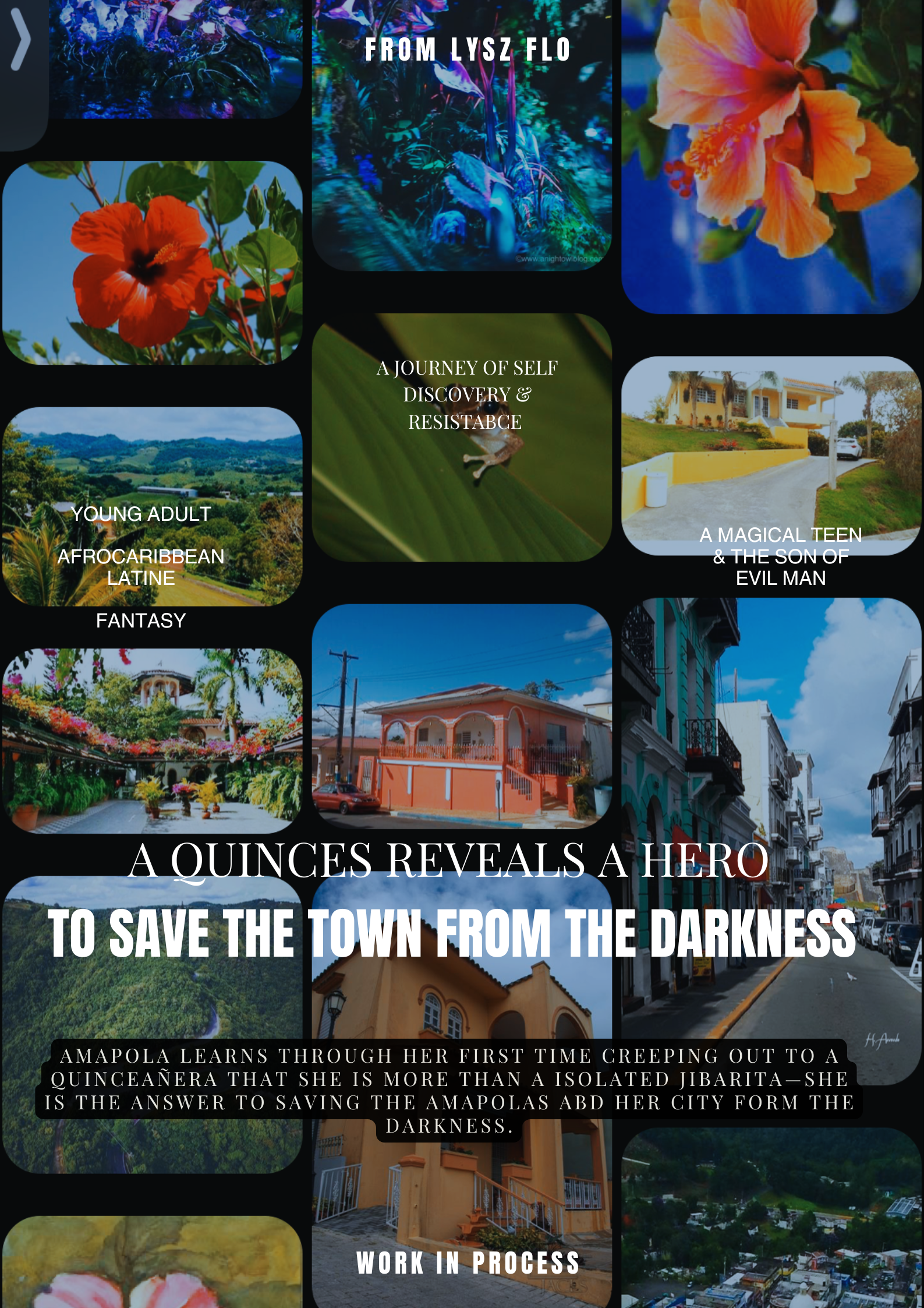 The Flor de Maga aka Amapolas, are mysteriously disappearing. Tita is a jibarita in the tippy top of the mountain in majestic puerto rico. Her grandparents are the guardians of the Amapolas, her parents are unknown. A bubbled childhood, little does she know there is a reason why she isn’t barred from fun yet silently not allowed either. She carries a secret only her grandparents know. When she decides to creep out of the house to attend a majestic Quinces everything changes, she must recognize her inner power to save her world and combat a complicated enemy.